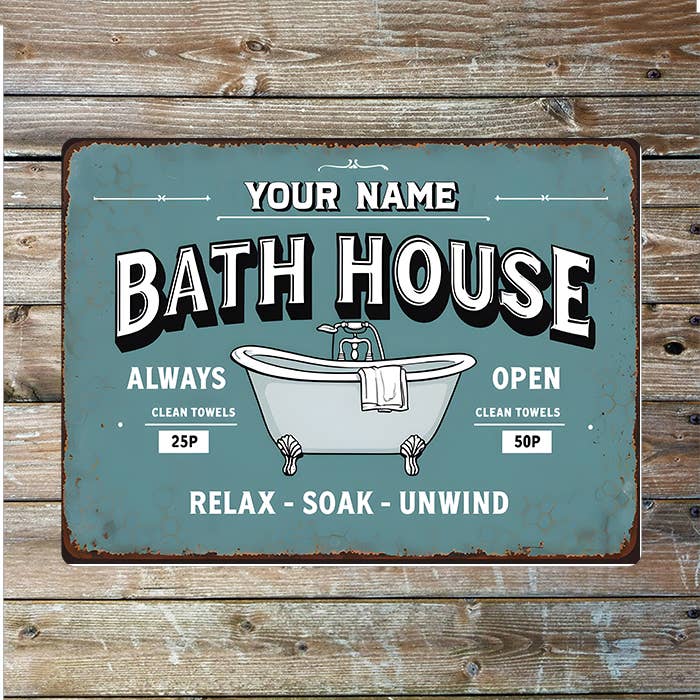 Bath House Bathroom Name Custom Personalised Metal Wall Sign