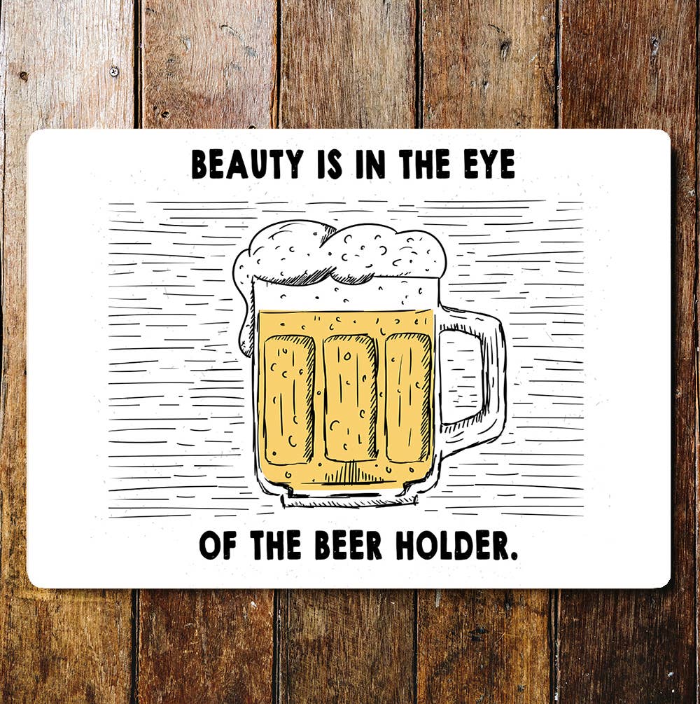Beauty Is In The Eye Of The Beer Holder Metal Sign plaque