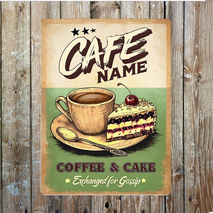 Cafe Coffee Cake Name Custom Personalised Metal Wall Sign
