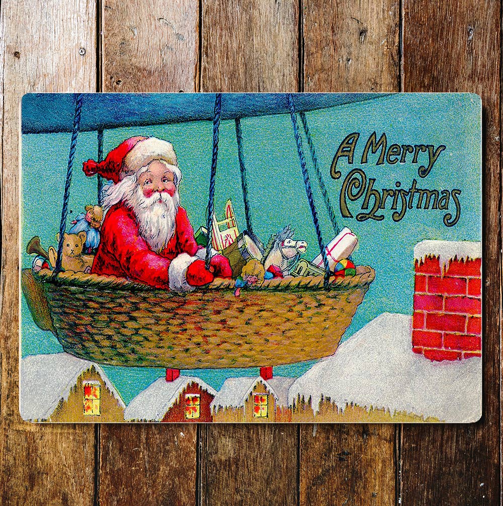 Christmas Santa Hot Air balloon Wall Metal Sign Plaque