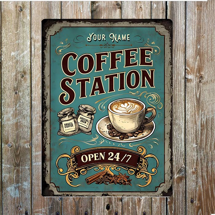 Coffee Station Name Custom Personalised Metal Wall Sign