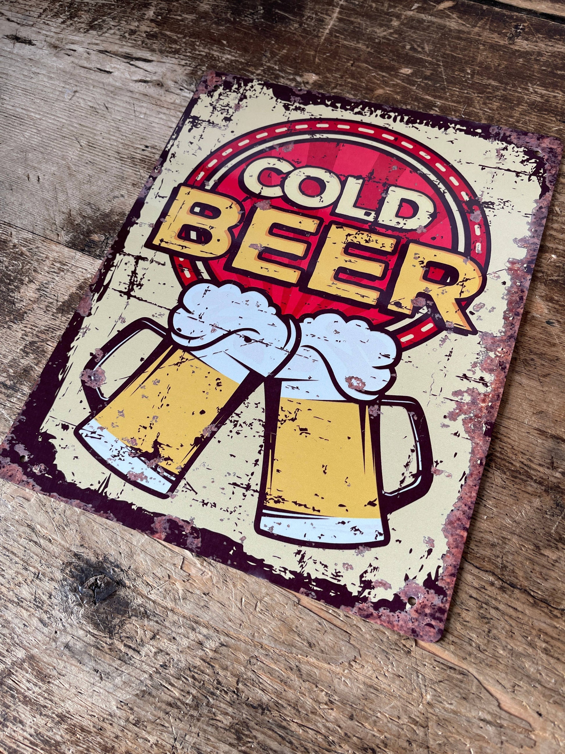 Cold Beer Cheers Pints Metal Vintage Wall Sign