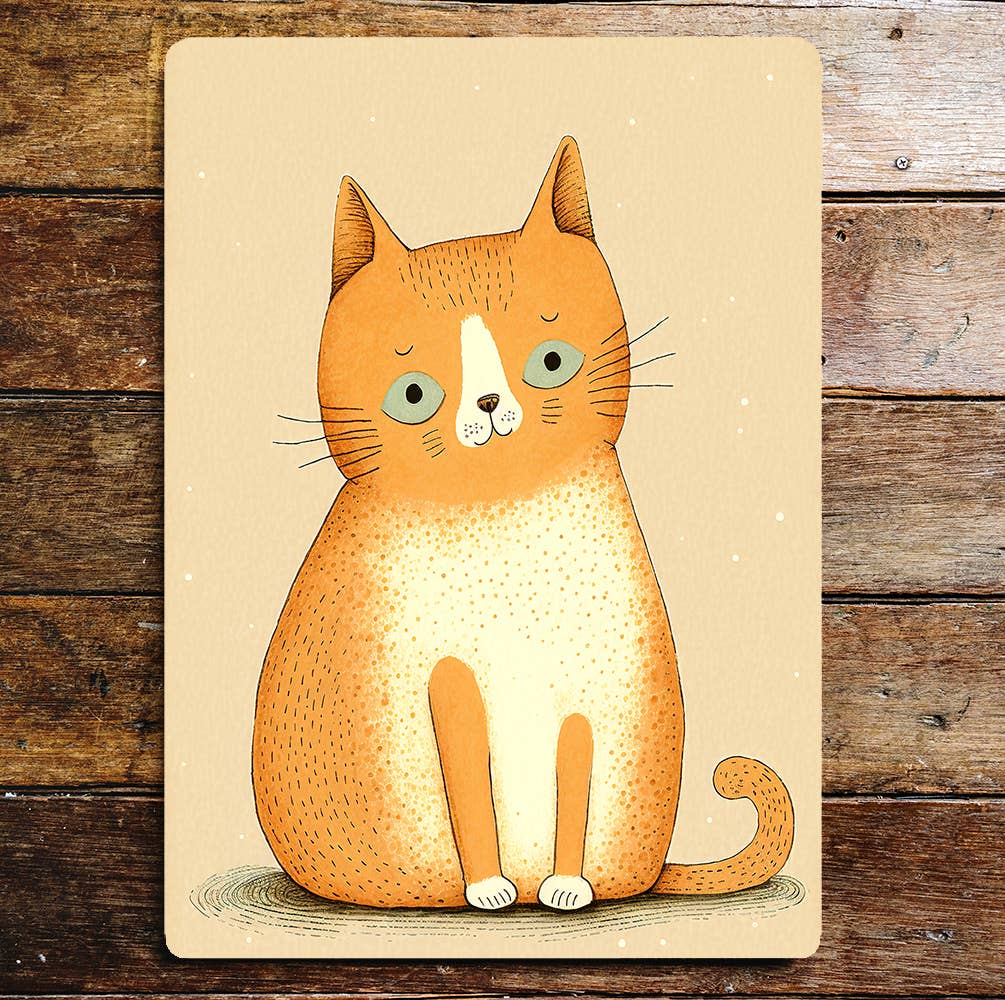 Cute Orange Cartoon Cat Blue Eyes | Metal Sign Plaque