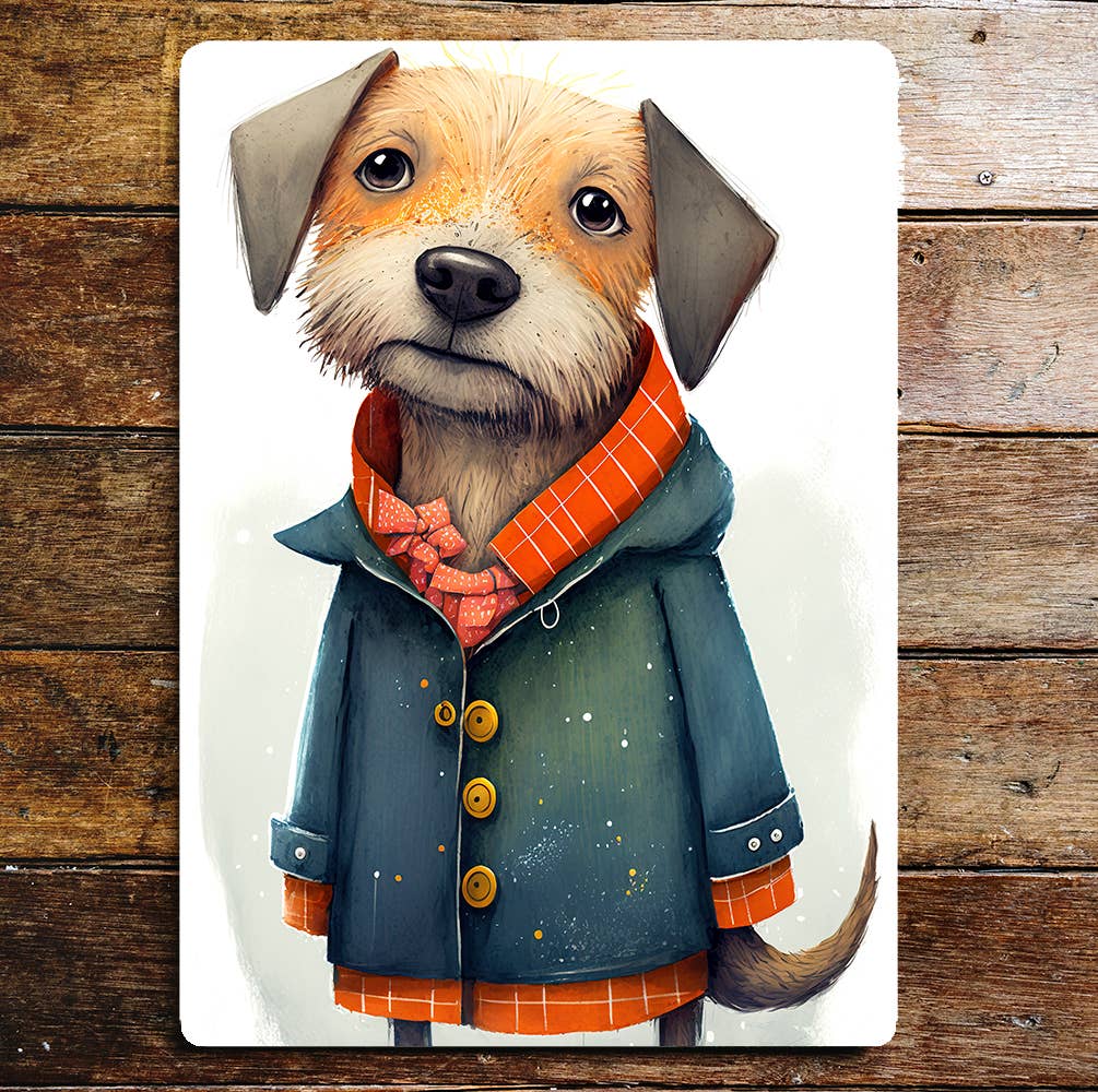 Dog Portrait Sad Face Cute Funny Coat Bow Metal Sign Plaque