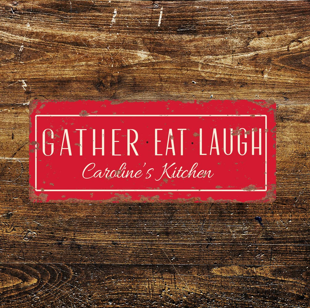 Gather eat Laugh Custom name Kitchen - Metal Wall Sign