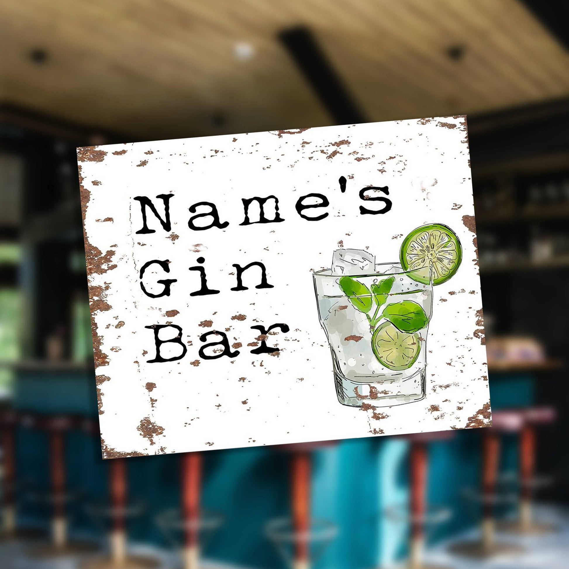 Gin Bar Personalised Custom Name Metal Wall Sign