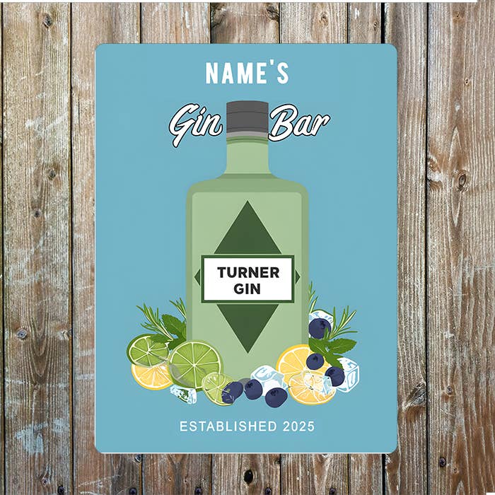 Gin Bottle Est Date Name Custom Personalised Metal Wall Sign
