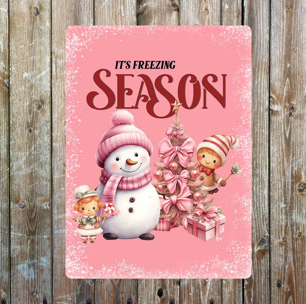 Its Freezing Season Pink Christmas Metal Sign Plaque