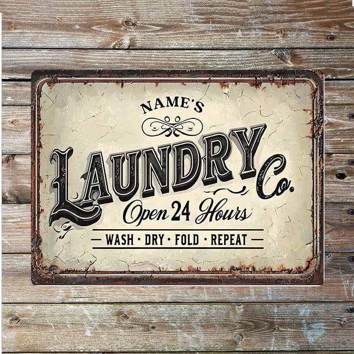 Laundry Open 24 Name Custom Personalised Metal Wall Sign