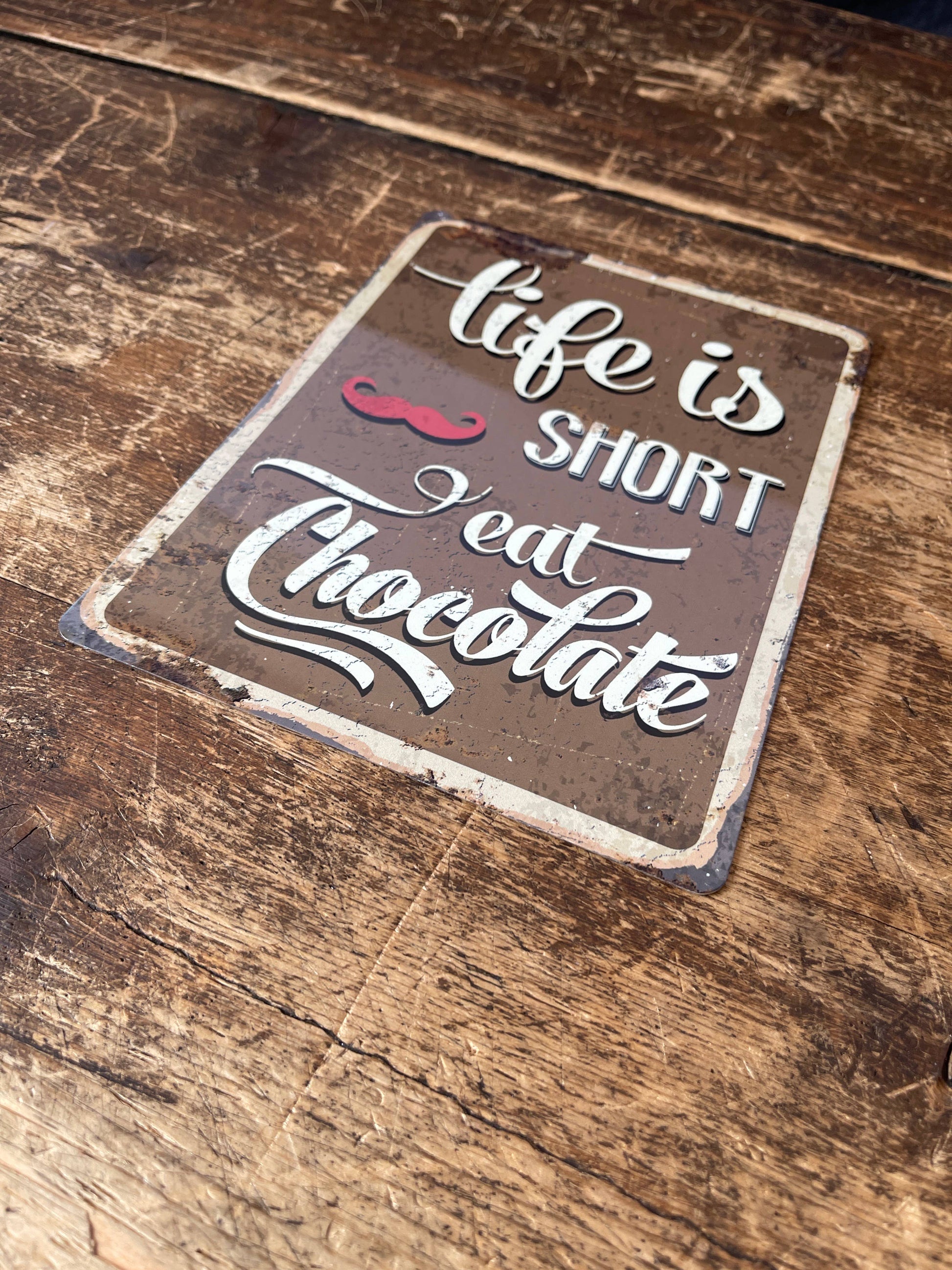Life Is Short Eat Chocolate Retro Metal Wall Sign Plaque