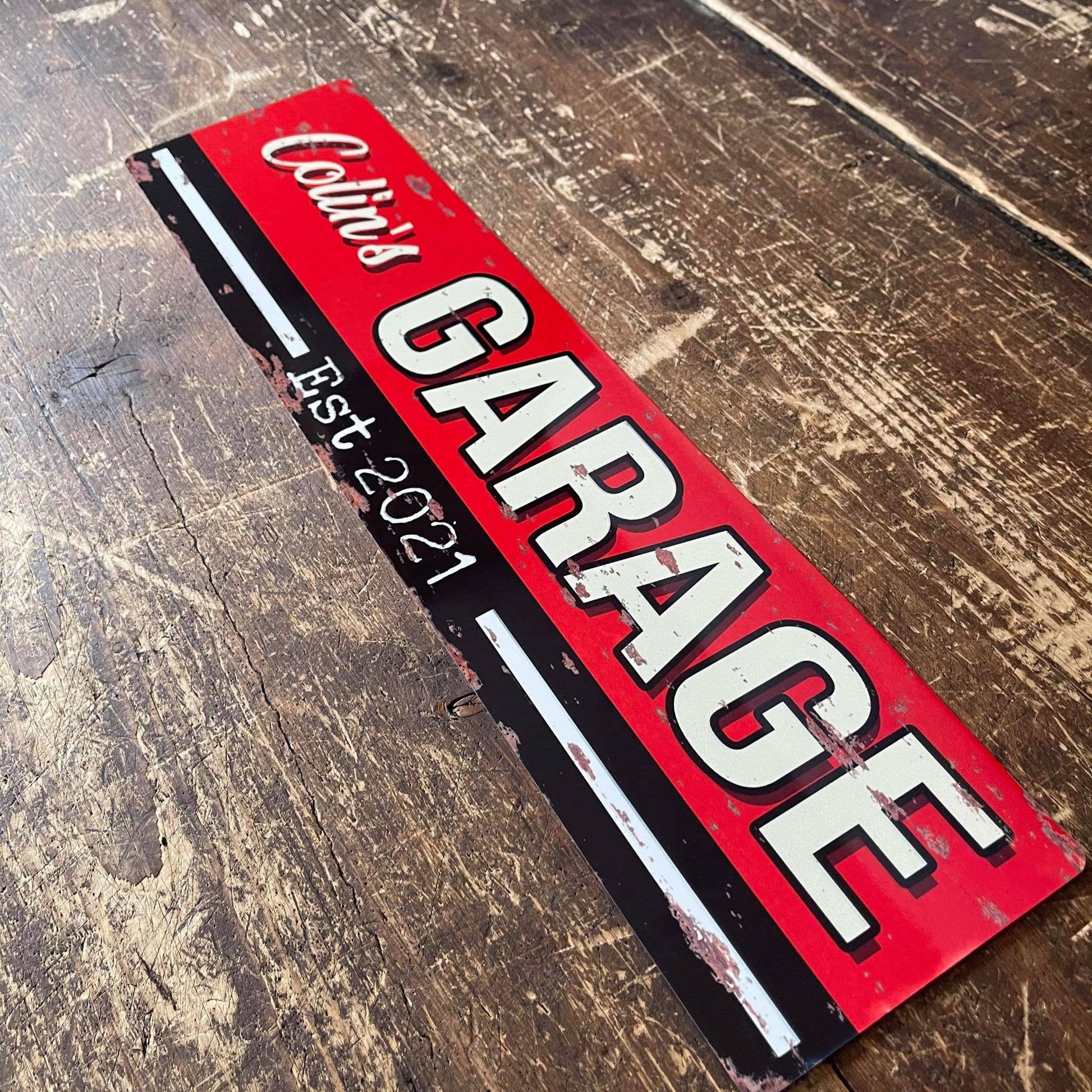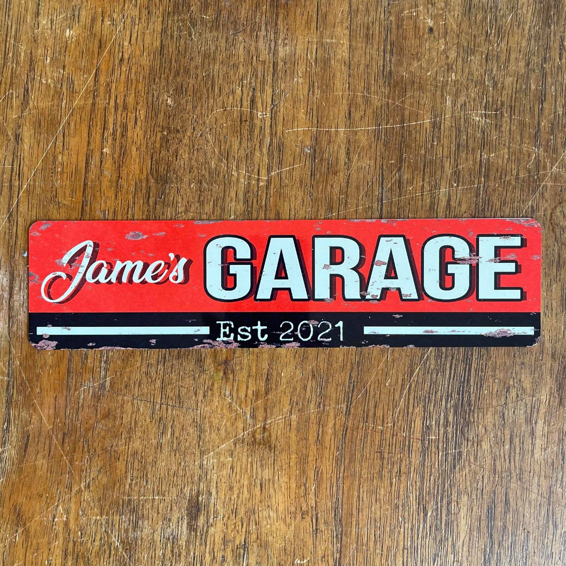 Name Garage Custom Metal Long Sign Plaque