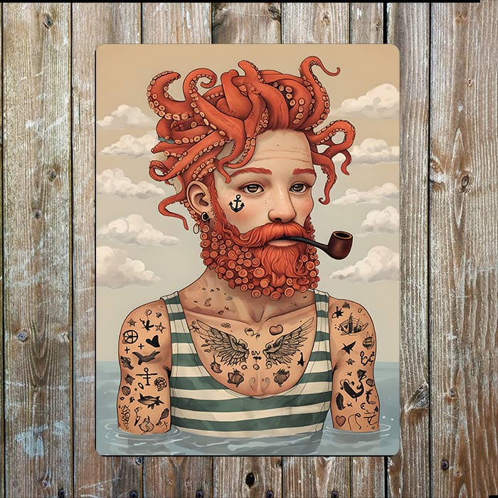 Octopus Hair Sailor pipe sea Nautical | Metal Sign Plaque