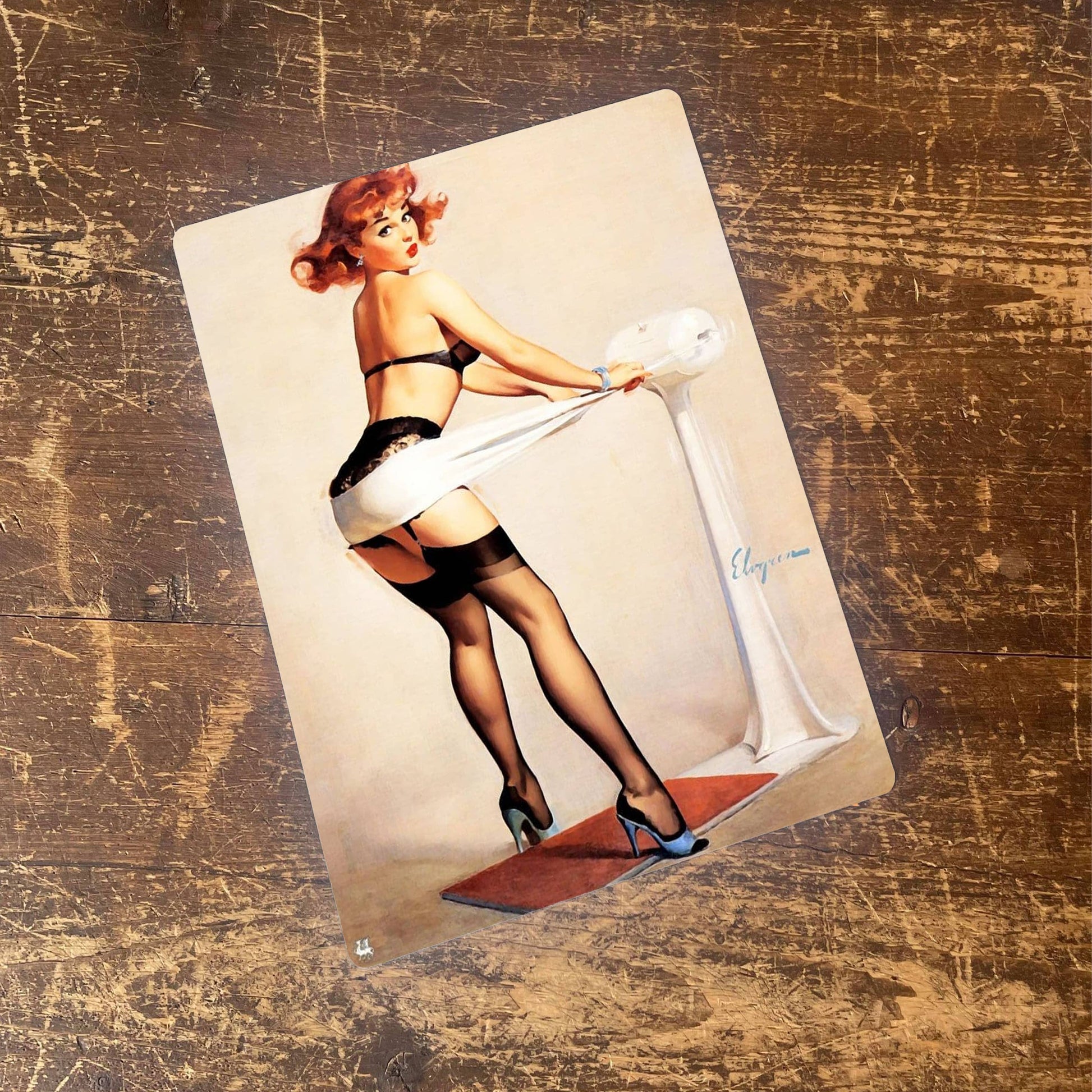 Pinup Girl Exercise Metal Humour Wall Sign