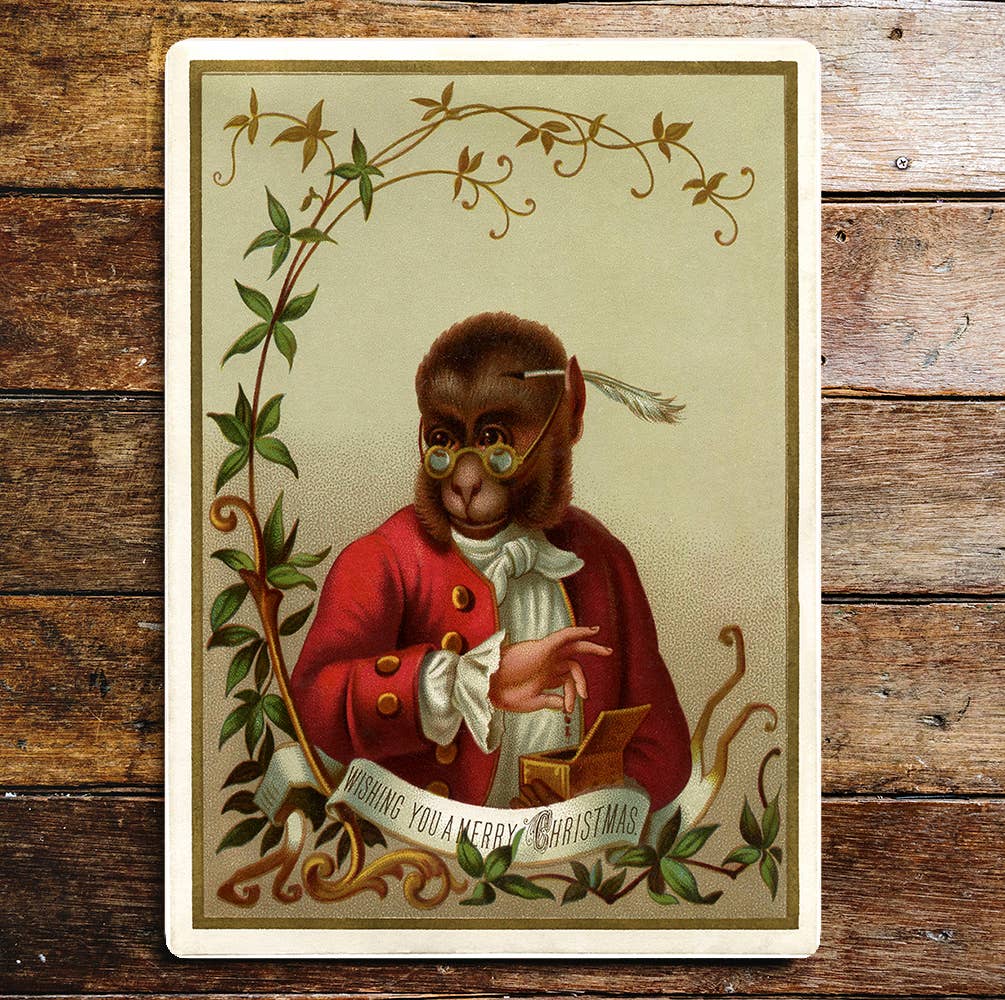 Posh Monkey Merry Christmas Red Jacket Metal Sign Plaque