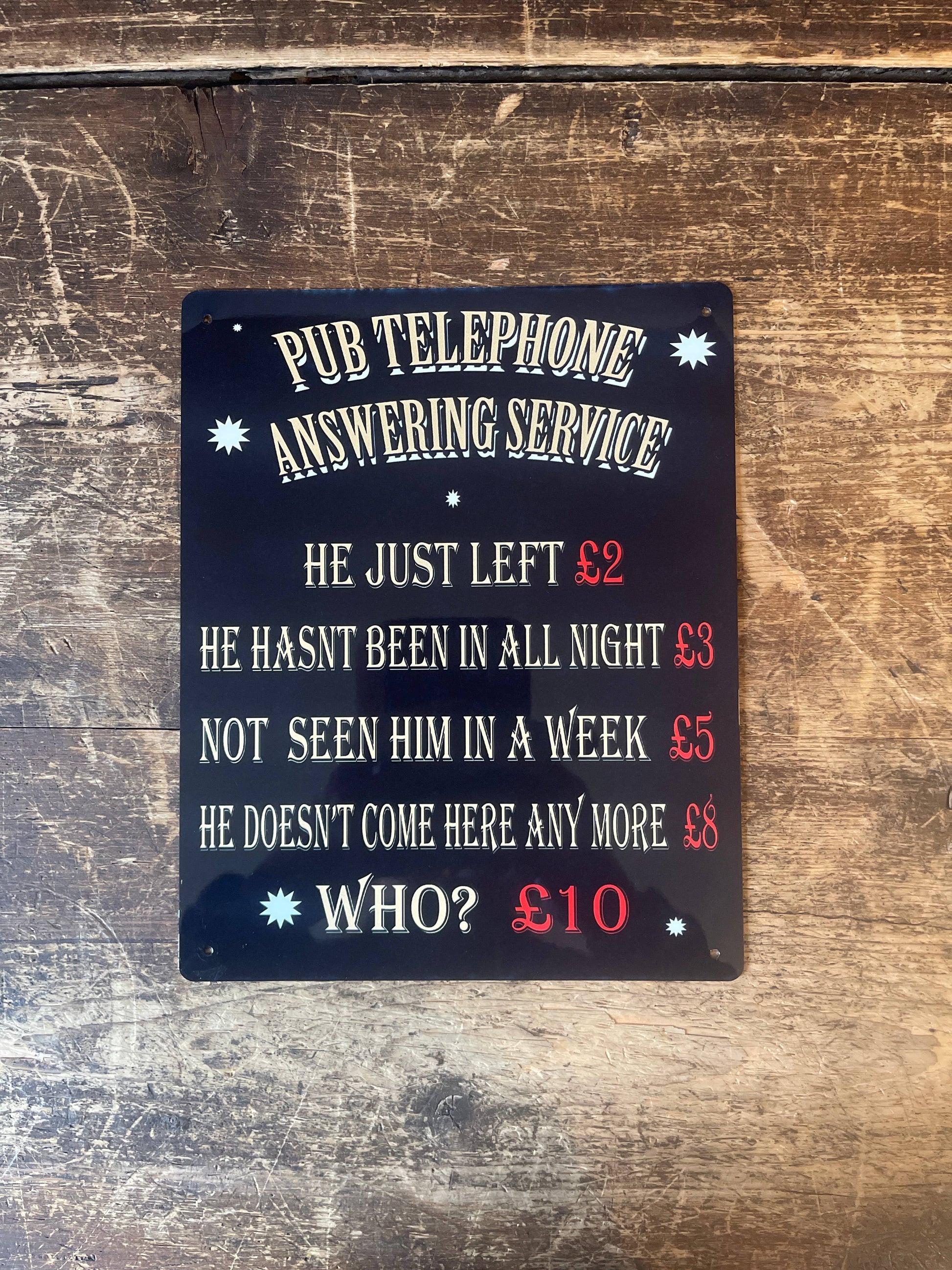 Pub telephone answering service Metal Sign