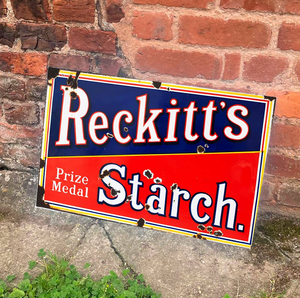 Reckitt's Prize Medal Starch Red And Blue Metal Sign Plaque
