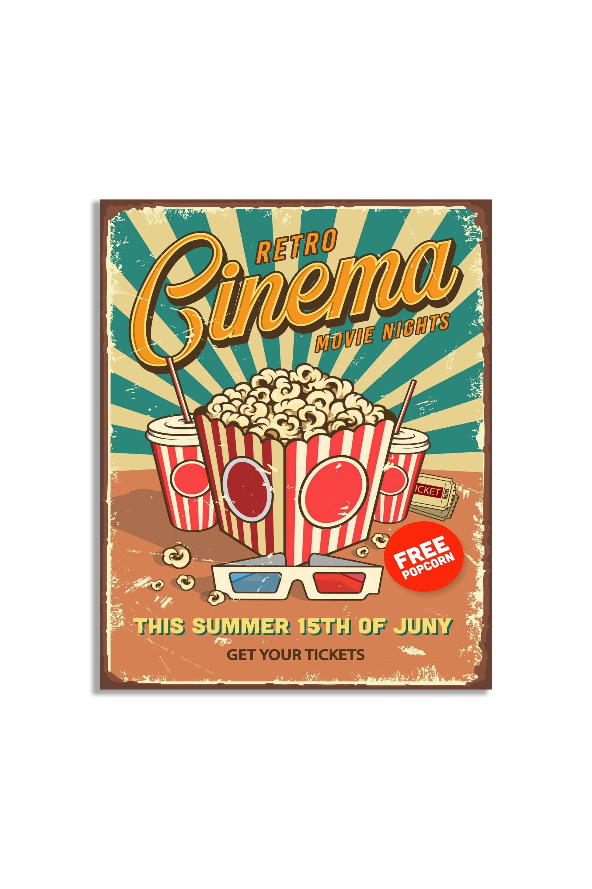 Retro Cinema Movie Night Metal Sign Plaque
