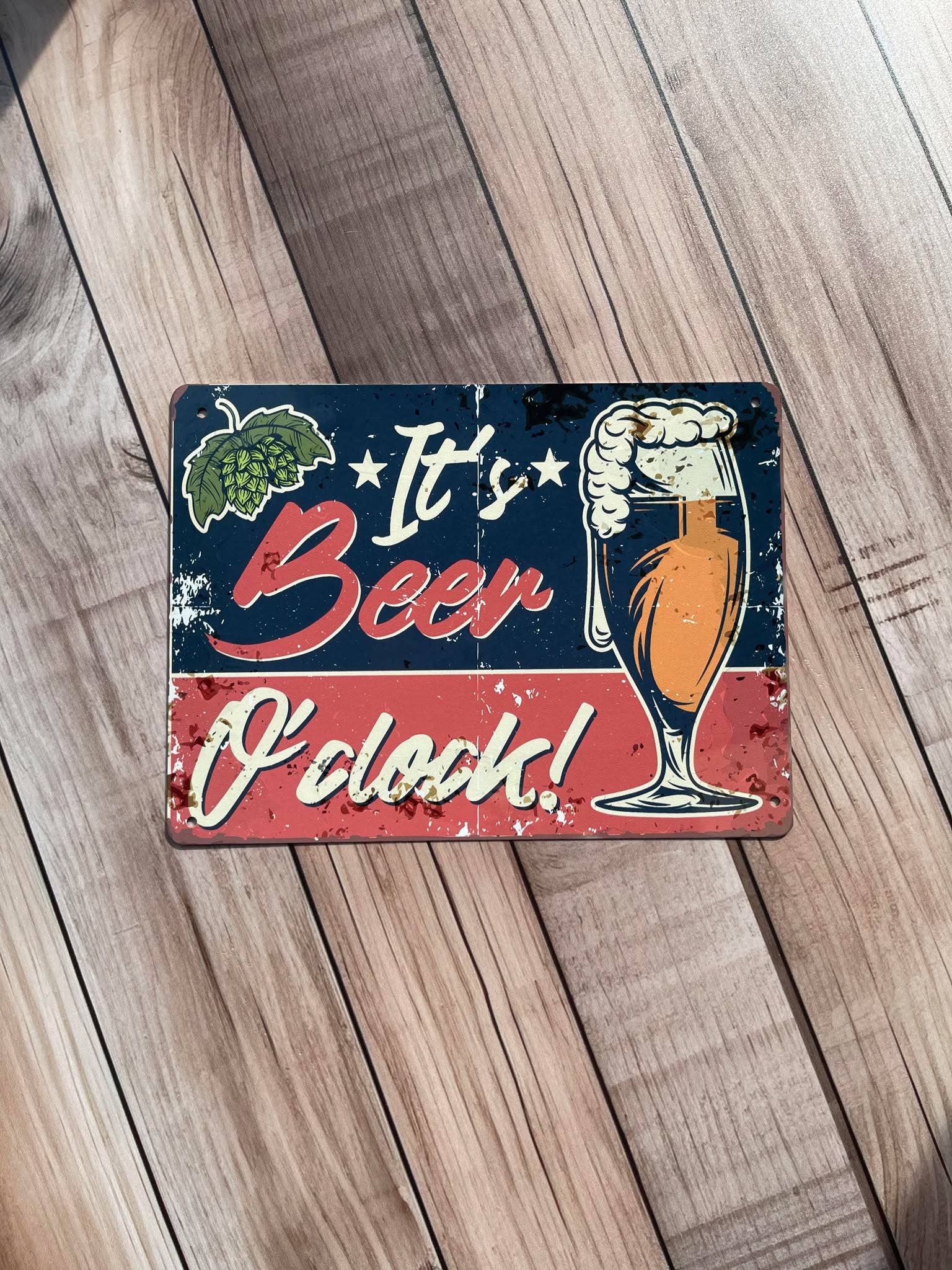 Retro It's Beer O'clock Metal Wall Sign Plaque
