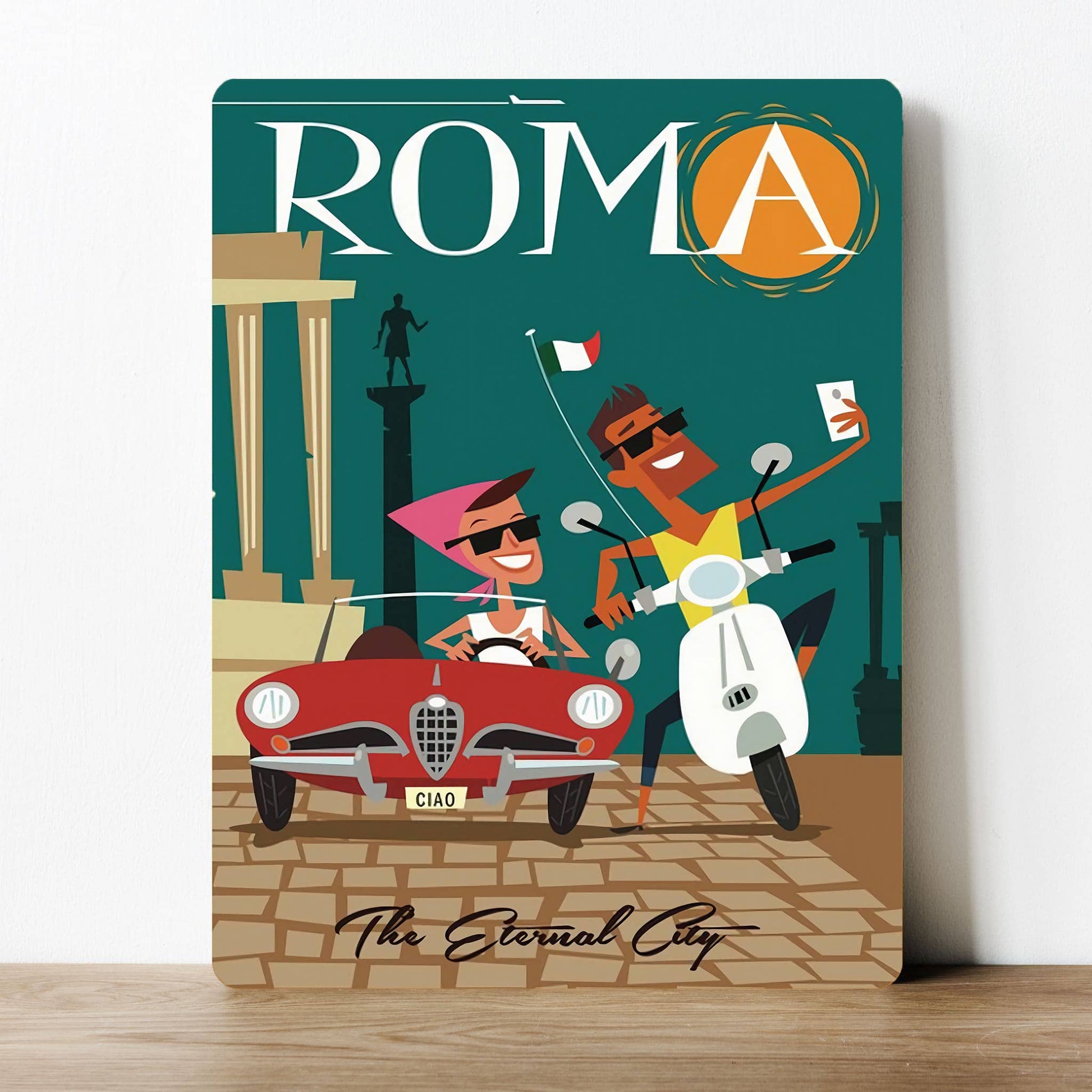 Roma Travel Itinerary Italy Travelling Metal Sign Plaque