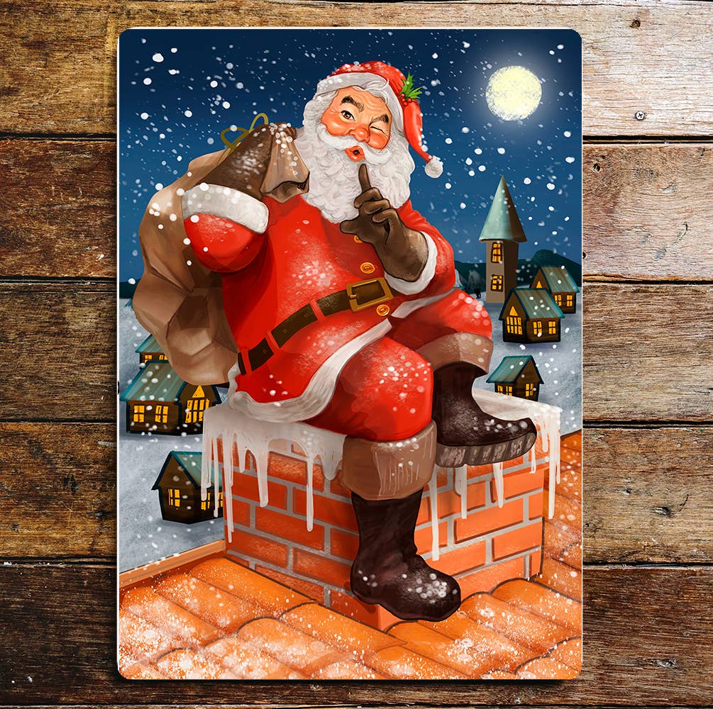 Santa father Christmas roof chimney Wall Metal Sign Plaque