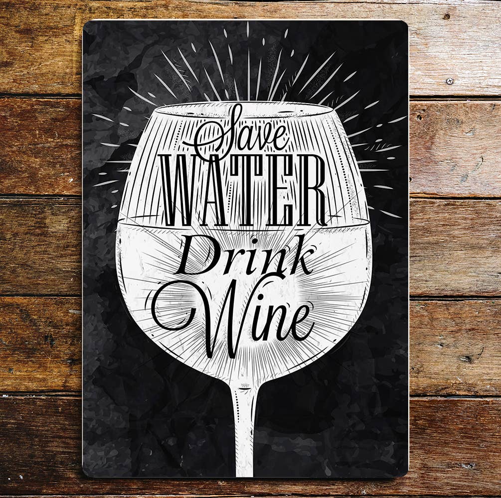 Save Water Drink Wine Metal Vintage Wall Sign
