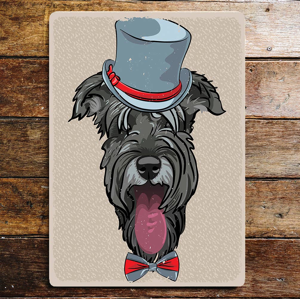 Scotty Dog Top Hat Bow Tie Portrait Metal Sign Plaque