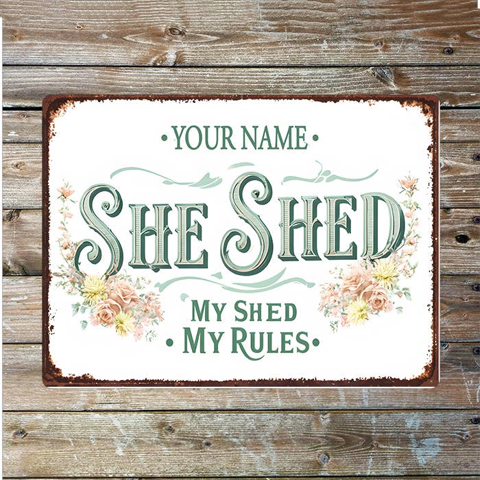 She Shed My Rules Name Custom Personalised Metal Wall Sign