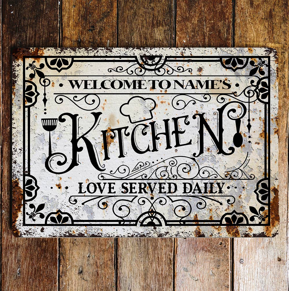 Welcome To Name Kitchen Love Served Metal Wall Sign Plaque